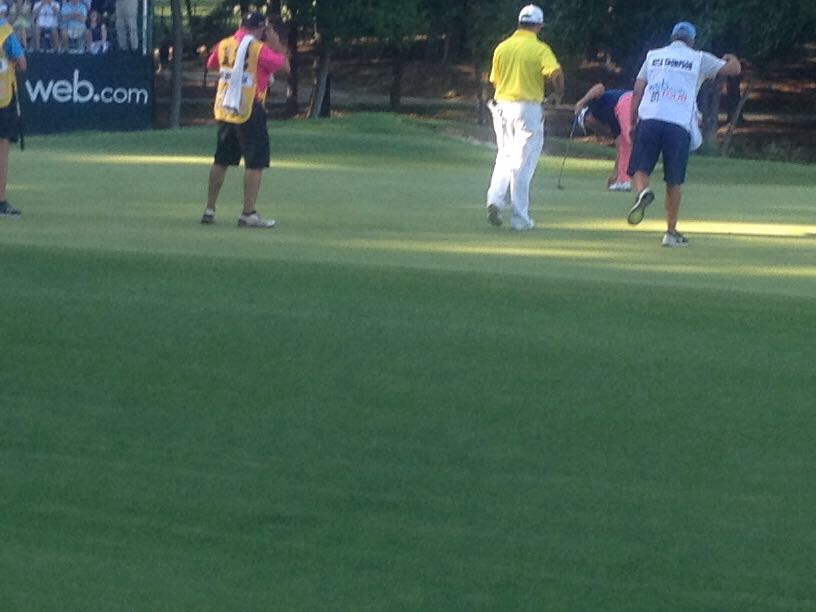 Staring at a 15-foot birdie putt, Thompson gave it a run but missed the opportunity to close out and instead gave all those in attendance the opportunity to witness an exciting playoff finish that ended after two holes.