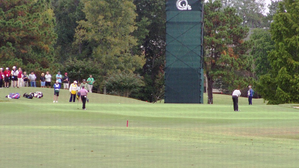 The three shook hands and as Perry and Kite walked down the fairway, Faldo exited the tee box and waited for a tournament official to come pick him up while he talked with Brown as curious spectators listened and looked on.