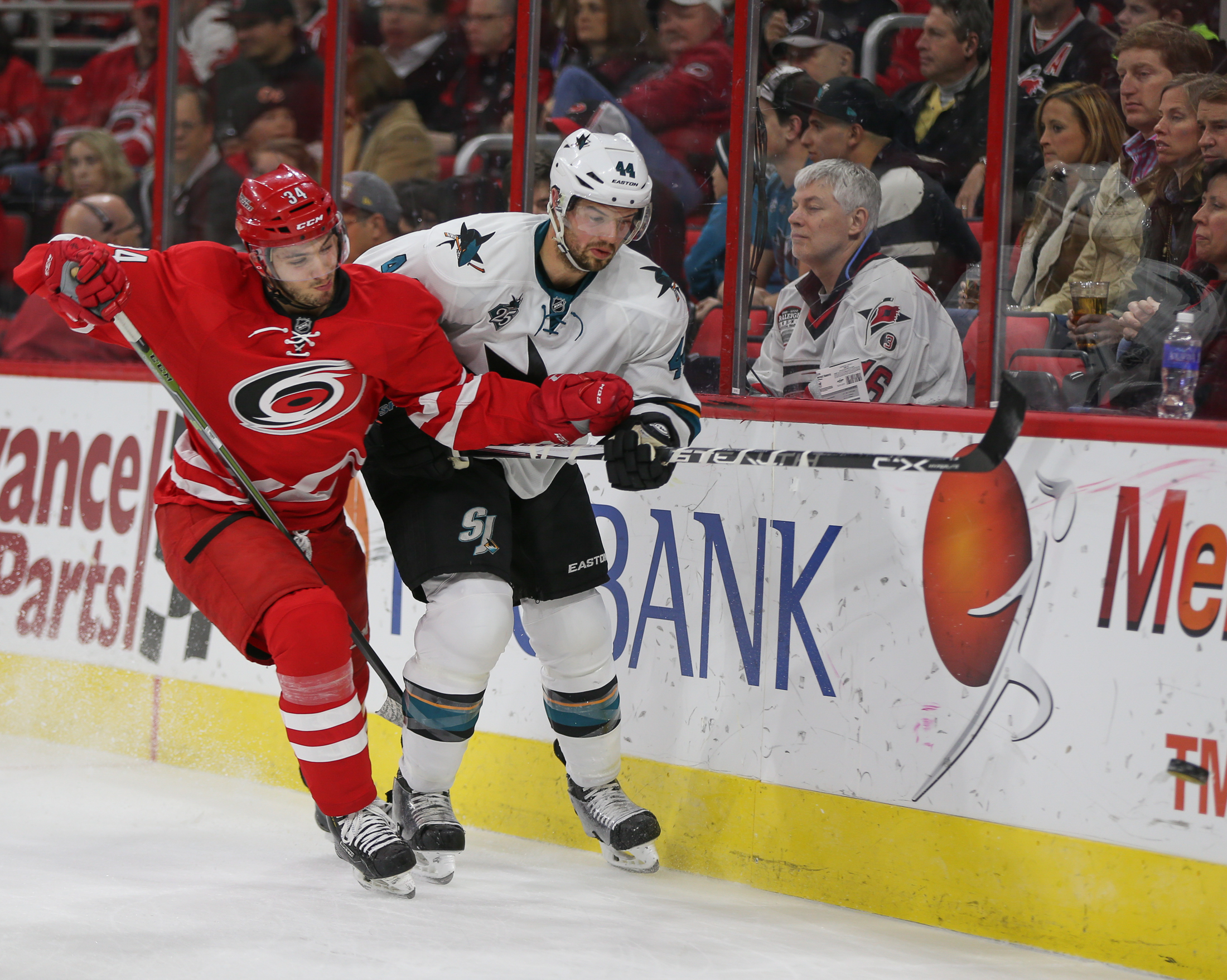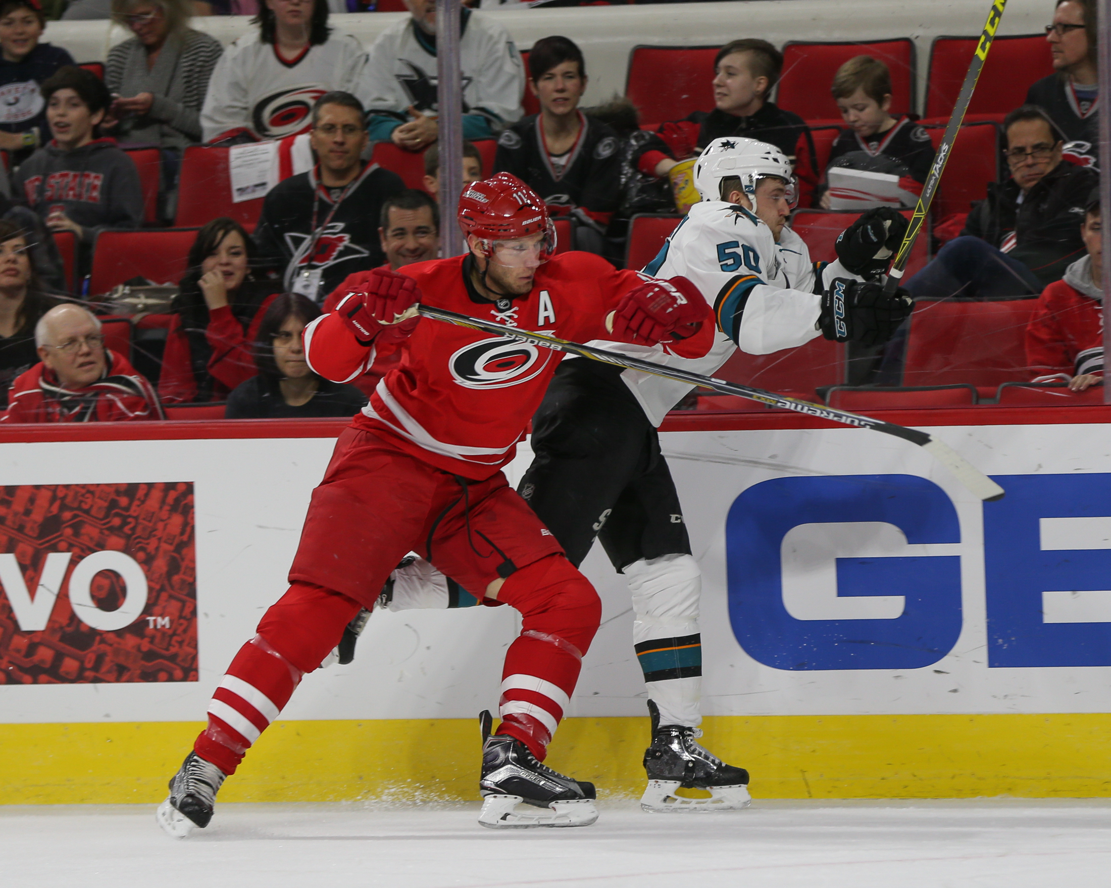 In an attempt to try to slow the Hurricanes’ momentum, San Jose’s Mike Brown went after Staal unprovoked during a multiple-player puck battle in the corner to Jones’ right late in the period.